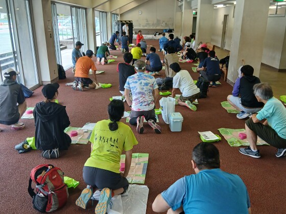 安心・安全な大会をめざしておりますので、ランナーの皆様にも胸骨圧迫講習を受けていただき、万一に備えていただければと受講いただきました。